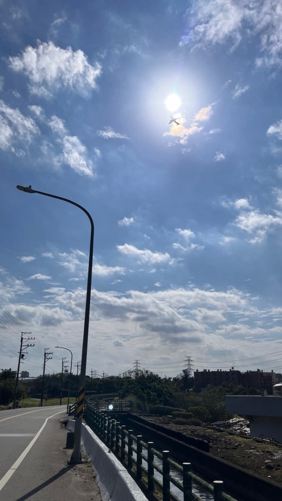 Der Kartendienst erweist sich weiterhin als nicht der beste, denn kaum zehn Minuten später treibt er mich in eine Hundefalle. Die ‚Abkürzung‘ an der Seite führt zwischen privaten Hallen durch, und einer der drei Köter kommt sogar auf mich zugerannt, nachdem ich bereits gewendet habe. Dieser Abschnitt, den die meisten Leute wohl als extrem unangenehm empfinden würde, findet ein Ende und ab der „Haihu Industrial Zone“ beginnt Taoyuan. Das, was ich aber als erstes mitbekomme, gleicht weiterhin einem Industriezirkus. Offene Lagerhallen am Wegesrand, kaum befahrene Straßen (und wenn, dann nur von Logistikfahrzeugen) und nicht zuletzt aufsteigende Flugzeuge direkt über meinem Kopf. Die Flugschneise liegt nicht weit entfernt, und wie erwähnt ist der Betrieb auf hohem Niveau. Danach wird es zwar besser, z.B. mit Radwegen auf Holzplanken, die zwischen alte Schienen gesetzt wurden, insgesamt bleibt aber das Gefühl eines unvollständigen Ortes. Ich nehme einfach mal an, dass man vor allem deshalb in die Stadt zieht, um hier zu arbeiten. TSMC und die Luftfahrtbranche sowie mir unbekannte Faktoren X machen‘s möglich. Wenn einem die Region gefällt, kann man schließlich auch nach Taipei ziehen. Obwohl, vielleicht wohnen hier auch Leute, denen die Hauptstadt schlicht zu teuer ist. So oder so keine Merkmale einer lebenswerten Stadt.