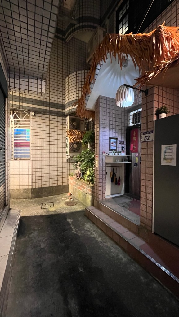 Einmal lasse ich mich noch von einem Hund verscheuchen, Abkürzungen sind nun mal gefährlich. Zum Schluss geht es eine Weile steil bergab, ins Tal nach Daxi. Der Ortsteil reiht sich zwischen Felder und Berge, wunderschön. In der Mitte befindet sich die Old Street, wo es laut Bobby berühmtes dried tofu geben soll. Um kurz vor fünf bin ich dann an der Unterkunft (hier die Komoot-Route des heutigen Tages), die sich gar nicht so leicht finden lässt. Eine äußerst schmale Gasse führt zwischen zwei Häuserblocks, nach Klingeln werde ich erhört. „What is your name?“ lautet die erste Frage. Dann: „You have a bike?“ Netterweise darf ich drinnen abstellen, ansonsten gibt es jede Menge Regeln. Wo man Schuhe tragen darf, welche Uhrzeiten für welches Verhalten gelten, keine Freunde reinbringen, und und und. Wäre ich später als 19 Uhr angekommen, wäre meine Buchung übrigens storniert worden, wie ich später auf Booking erfahre. Der Schlafsaal ist gemütlich, jeder hat eine Koje aus Sperrholz zur selben Richtung.