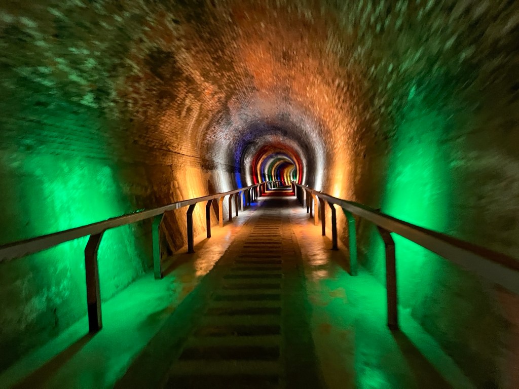 Der Umweg ist nicht lang, aber für schnellere Verkehrsteilnehmer ausgelegt. Immerhin ist das Fahrradsymbol explizit ausgewiesen, ich darf also offiziell durch den Autotunnel.