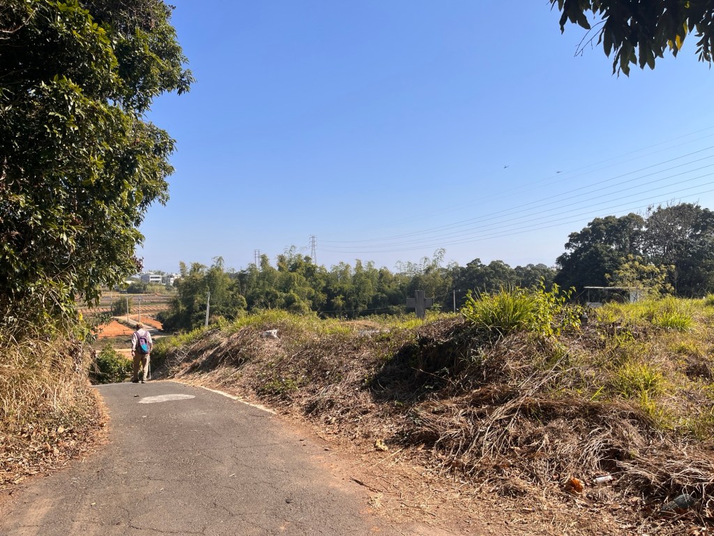 Vor dem Anstieg steht mal wieder ein zufällig gesetzter Tempel mitten auf einer leblosen Kreuzung, dahinter wird der Weg schmal. Wie manche Straßen angeordnet sind, grenzt echt an Wunder, denn es kann gut sein, dass parallele Asphalttrassen nebeneinander verlaufen und sich dann wie gewürfelt kreuzen. Sehr, sehr viel versiegelte Fläche, bei der man sich fragt, ob es einen Plan dahinter gibt.