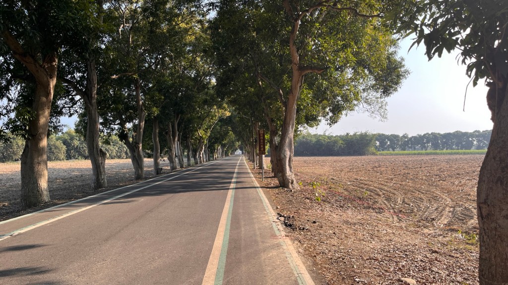 Ab hier fahre ich nach Südosten, wobei es immerhin wieder durch Felder und stark beruhigte Verkehrsgebiete geht. Tatsächlich erlebe ich mehr Aufregendes als auf jeder Landstraße. Bei genauerem Blick sieht man oft mehr, denn jeder Ort ist verschieden, trotz ähnlichen Strukturen. Zufällig aufgespannte Hängematten, winzige Klärwerke, Freiluft- und überdachte Plantagen, längliche Zelte für besonders empfindliche Setzlinge, selten sogar Maisfelder. Einmal mehr stechen du tiefgelegenen Felder hervor, zwischen denen ein durchweg ausgeklügeltes System zur Bewässerung installiert ist. Was passiert eigentlich hier zur Regenzeit? Können die Pflanzen eine Überflutung überleben? Denn genau darauf müsste es doch hinauslaufen… Hähne, vereinzelte Kühe und andere Tiere vom Bauernhof geben ihren Senf dazu, blöken und schreien vor sich hin.