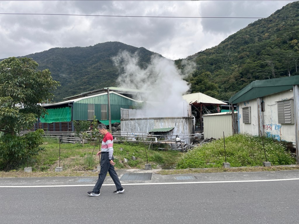 Nicht viel später stößt man auf ein Örtchen, das den Eingang in ein Tal markiert. Weiter im Inland will ich einen ‚Hot Spring“ besuchen, dessen Google-Bilder aussehen, als würde man direkt im Flussbett chillen. Zwei Frauen im 7/11 sind leider nicht gerade behilflich, in Erfahrung zu bringen, ob man dort wirklich baden kann und wenn ja, wo man sich am besten umzieht. Die eine zeigt letztlich nur auf mein Handy, wo die Thermalquelle markiert ist und hebt den Daumen. Also fahre ich hin, der Weg ist garniert mit Luxushotels, die alle mit „Certified Hot Spring“ werben. Letztlich gelangt man aber nicht ins Flussbett, auf jeder Seite des Flusses geht es steil bergab. Da rege ich mich schon auf. Wie kann man so schwer von Begriff sein? Die eine Frau hat die übersetze Frage sogar laut vorgelesen, und ich habe die chinesischen Wörter für Klamotten und Wo erkannt, so falsch kann es also nicht gewesen sein. Wenn sie es nicht weiß, hätte sie mir das auch einfach sagen können, statt mich ins Nichts zu schicken. Leider weiß ich nicht mehr, wer mir das empfohlen hat, sonst hätte ich genauer fragen können. Auf dem Rückweg fällt mir tatsächlich auf, wie in den Höfen der Hotels gedampfbadet wird, ich bekomme ganz leichte Après-Ski-Vibes. Im „Route Nr. 1“-Guide sind übrigens noch andere Hot Springs markiert, für die empfohlen wird, sich nach einem harten Tag auszuruhen. Wäre ja schön, wenn der Ratgeber auch dazu schreiben würde, dass es ebenfalls kostenpflichtige Spa-Angebote sind und keine wilden Blubberquellen. Die gibt es nämlich auch.