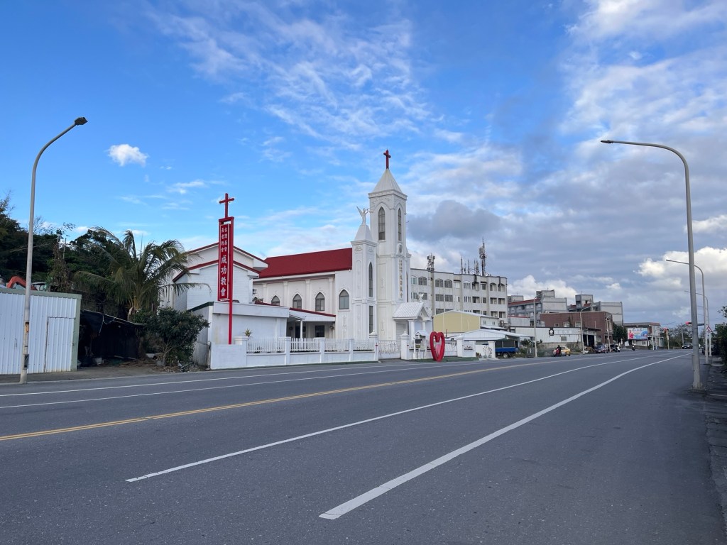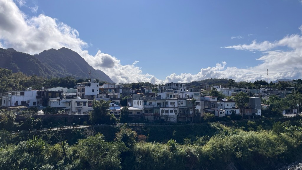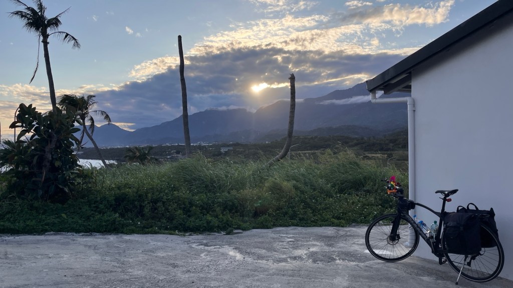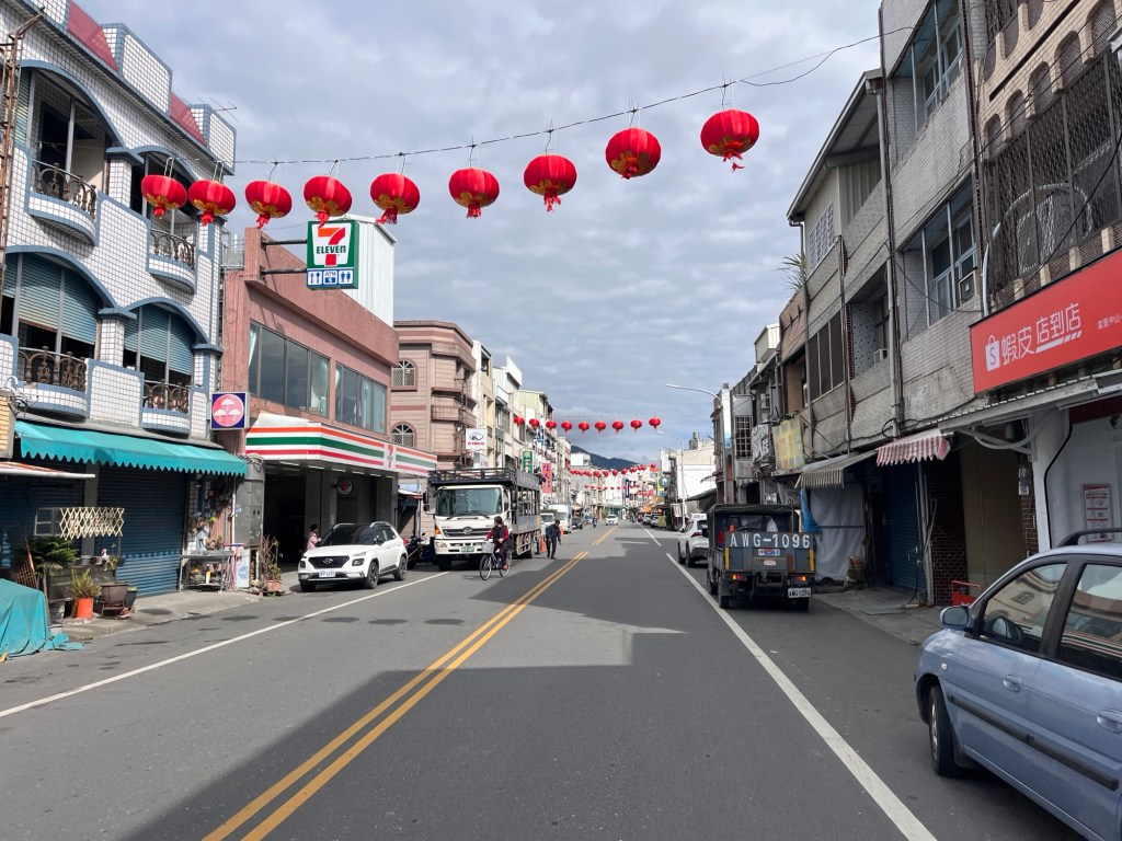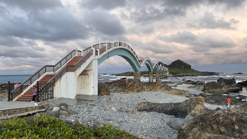 Chenggong ist ein schönes Hafenstädtchen mit starker geografischer Neigung zum Ufer. Es wirkt fast, als wäre der Ort einmal zur Hälfte abgesackt. Es gibt erstaunlich wenige Ampeln, große Rechts-vor-Links-Kreuzungen sind in Taiwan ziemlich selten. Doch die Breite der Straße täuscht über das geringe Verkehrsaufkommen hinweg. Zunächst fahre ich aber wieder raus, denn mein Hostel (mit 778$TD, also 21€ zwar das billigste, aber immer noch teuer) liegt außerhalb im Grünen. Booking zeigt mir das falsche Haus, aber eine hilfsbereite Spaziergängerin weist mir den richtigen Weg. Außerdem empfiehlt sie, zum Essen rechtzeitig in den Ort zu fahren und zur Acht-Bogen-Brücke den Umweg über die Radstrecke zu nehmen.