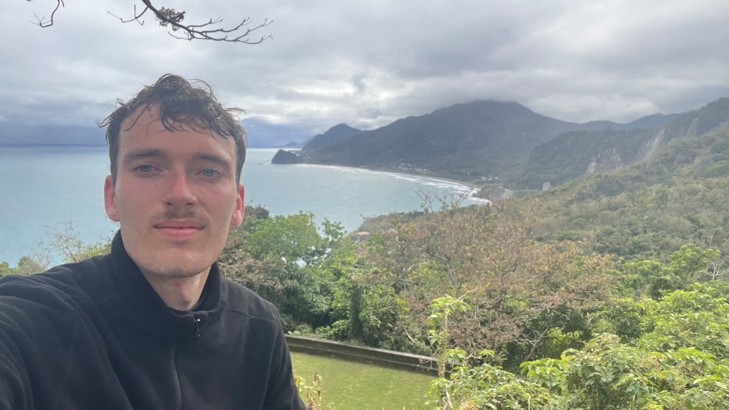 Nach Ausfahrt geht es weiter wie gewohnt, gegen die Luftströmungen. Auf einer sauber gepflegten Wiese mit obskuren Skulpturen lege ich mich erschöpft ins Gras und verschlinge ein „Strawberry Danish“, mein neues Lieblingsbrötchen aus den FamilyMarts. Die erdbeerhafte Glasur und der weiche Blätterteig passen perfekt zueinander. Außerdem habe ich massig Hunger, mir würde gerade fast alles schmecken. Dabei ist die Durststrecke an Komfort-Läden beendet, ein neuer 7/11 taucht auf. Ein Ende ist in Sicht und zu meiner Überraschung schreibt Sebastian, dass er und Anna bereits in Hualien sind. Ich buche mich ins selbe Hostel ein und fahre fort. Dass Hualien näher rückt, erkennt man übrigens wie bei Taitung an den Ortsschildern, die auf die orthografisch korrekteren Pinyin-Bezeichnungen zurückgreifen. Statt „Hualien“ heißt es hier schon „Hualian“, was viel mehr der eigentlichen Betonung entspricht.
