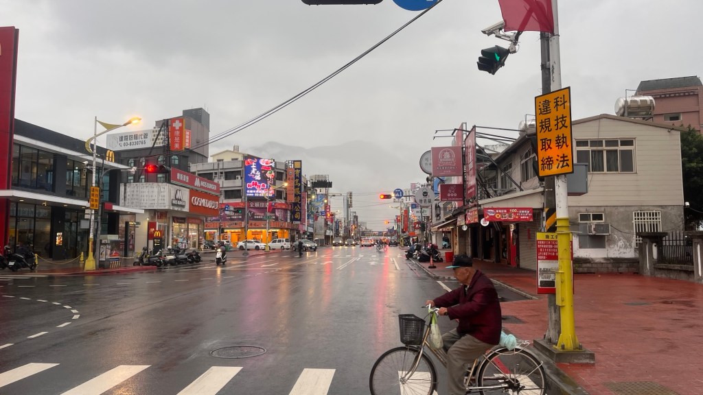 Knapp 30 Kilometer vor Hualien weicht die Straße ins Land ab, und dazu geht es stark aufwärts. Um keine Krämpfe oder Zerrungen zu provozieren, muss ich meistens den niedrigsten Gang fahren und trotzdem kämpfen. Die generelle Muskelermüdung zeigt sich in erster Linie dadurch, dass die Zeiten kürzer werden, bis die Stränge brennen, und zweitens die Zeiten länger werden, bis der Muskelschmerz nachlässt. Der Anstieg will einfach nicht enden, ein Blick auf die von Maps vorausgesagten 250 Meter machen es nicht besser. An einem Parkplatz kann ich weiter hinabschauen und spüre meine Stirn so sehr glühen, als hätte ich Fieber. Aber es hilft ja nichts, außerdem beginnt man in solchen Momenten ja erst, richtig zu leben. Alles rausquetschen, was möglich ist, das hat eine spaßige Seite. Nebenbei bin ich sehr dankbar, so früh aufgestanden zu sein. Ich dachte, ich hätte reichlich Zeit, aber nein, ganz so viel ist es dann doch nicht.