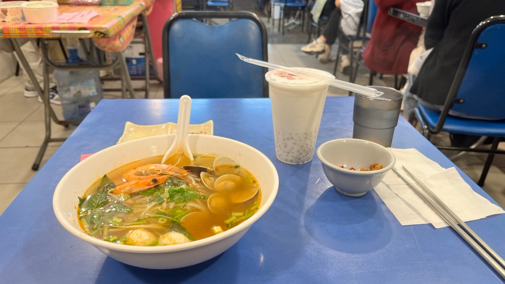 Abends suche ich endlich mal wieder ein nahes Restaurant auf, wo ich thailändische Reisnudelsuppe mit Seafood und unerwähntem pork (welches ich natürlich nicht esse) bekomme. Der Kellner spricht gutes Englisch, das Mahl sieht wirklich gut aus und schmeckt auch so. Ob es also am dauerrotzenden Gast einen Tisch weiter liegt (Bestell dir nächstes Mal halt etwas weniger Scharfes!) oder doch an der Mahlzeit selbst – die bekommt meinem Magen ganz und gar nicht.