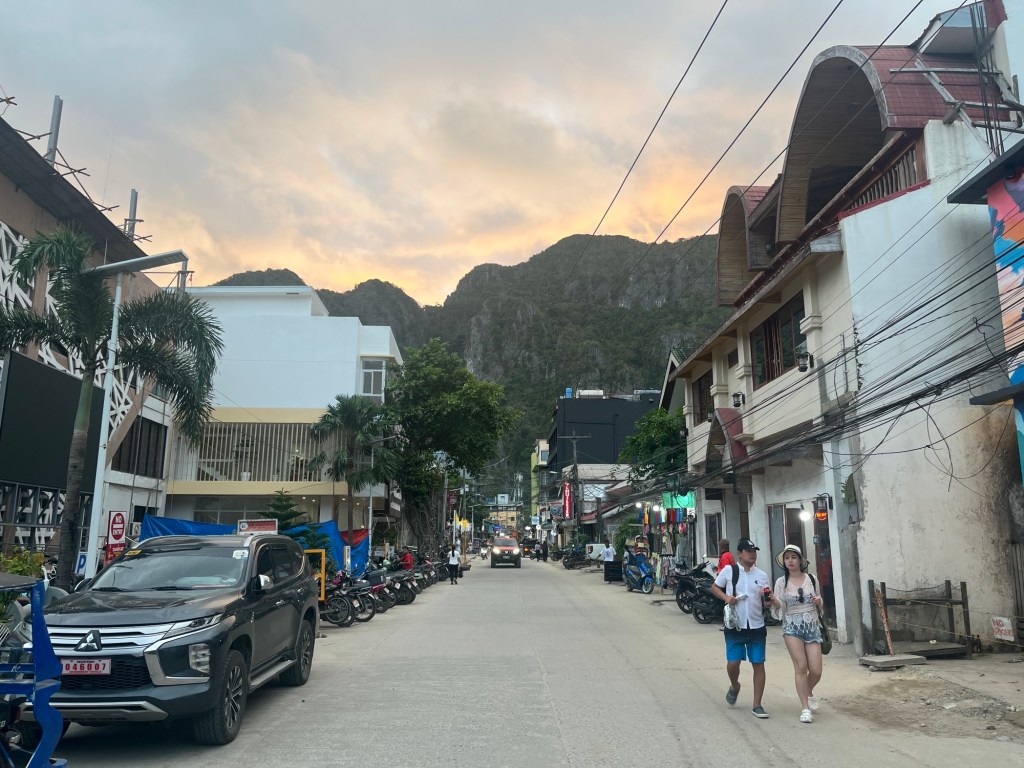 In der Stadt laufe ich dann erstmal umher, auf der Suche nach Essen. Einen Smoothie sowie sagenhafte fünf Bäckereiteilchen für zusammen einen Euro reichen aber nicht. Ich esse indisch, aber obwohl das Restaurant in einer Seitenstraße und nicht gut besucht ist, fallen die Preise eher europäisch aus. Das wird aber an El Nido und seinen Hauptkunden liegen, schade. Ich irre noch eine Weile herum, wobei mir auch hier Hunde mit teils unerträglicher Krätze auffallen. Wie manche sich über den Boden rollen, nur um dem Juckreiz vergeblich ein Ende aufzwingen zu wollen, ist schon sehr bemitleidenswert. Ansonsten erlebe ich wieder mein persönliches Großstadtphänomen. Natürlich ist El Nido alles andere als eine Stadt, aber es gibt eine hohe Dichte an feierlustigen Europäern, die allesamt als Pärchen oder mit der Familie gekommen sind. Die Backpacker von vorhin waren vielleicht doch nicht alleine unterwegs oder sind in dem Fall im Hostel geblieben. Jedenfalls fühle ich mich verloren im Trubel der Gassen, nichts gegen den Trubel. Aber ohne Anknüpfungspunkt bin ich auch nicht motiviert, mir alleine einen reinzusaufen.