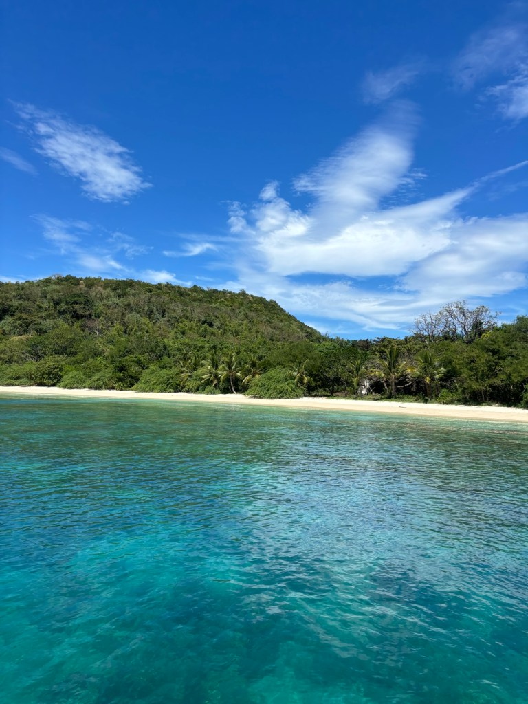 Gegen 16, 17 Uhr bricht die dritte Flasche Rum an, nachdem wir schon eine kurzzeitige Sperre kassiert haben. Wir rotieren die Trinkspiele, unter anderem wird „100 questions“ gespielt, nicht gerade mein Favorit für neue Gruppen. Da man sich nicht kennt, kommen die oberflächlichen Bewertungen noch gemeiner rüber und wenige Personen polarisieren, quasi jede zweite Karte wird an Lucas verwiesen. Trotzdem haben sich die Spanierinnen (verständlicherweise) zurückgezogen, führen conversación vorm Bug. Mehr als ein paar Sätze haben wir auch aus den Britinnen und der Niederländerin nicht herausgekriegt, aber der Londoner Matt scheint cool zu sein. Die Filipinos würden ihn immer Max nennen, was Lucas prompt zum Anlass nimmt, es denen gleichzutun. Matt und die Niederländerin Lina haben sich auf Sri Lanka kennengelernt und reisen immer mal wieder zu zweit, so auch aktuell. Die beiden Britinnen kommen aus Nottingham, wirken wie ca. 30, arbeiten wohl als Anwältinnen und haben den hochnäsigsten Akzent der ganzen Gruppe, was sicherlich nur ein Vorurteil ist. Am nächsten Strand lässt Marius seine persönliche Drohne steigen, das passt zu dem Bild, was er in den ersten Stunden präsentiert. Etwas schlecht gelaunt, nicht allzu gesprächig, außerdem nerdig verwöhnt, so wie er sein Privatspielzeug fernsteuert. Er und Franzi sind auf jeden Fall die ältesten und würden sich in einer Gruppe mit höherem Altersdurchschnitt wohler fühlen, da bin ich mir sicher. Franzi versucht es wenigstens mit der Konversation, mal erfolgreicher, mal weniger erfolgreich.