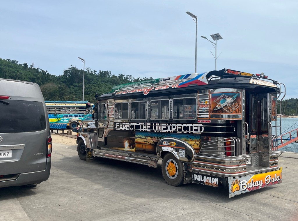 Nach einem Gruppenbild werden wir alle in ein Shuttle gesetzt und locker eine Stunde lang zurück nach El Nido gekarrt. Auf dem Weg tauschen wir Bilder aus, genau genommen bekomme ich jede Menge Bilder. Kaum eines der Tour stammt von mir, ich habe mein Handy wirklich mal etwas weniger benutzt als sonst. Außerdem müssen wir leider feststellen, dass es in El Nido kaum noch bezahlbare Hostels gibt, eine sehr kritische Situation. Die befreundeten Hamburgerinnen haben Leo von dem Problem geschrieben, jetzt herrscht helle Aufregung. Auch ich bin nicht fein raus, seit ich weiß, dass ich heute keinen Bus mehr nach Puerto Princesa bekomme. Selbst ein mit 3,3 bewertetes Zimmer ist weggebucht, bevor wir es uns schnappen können.