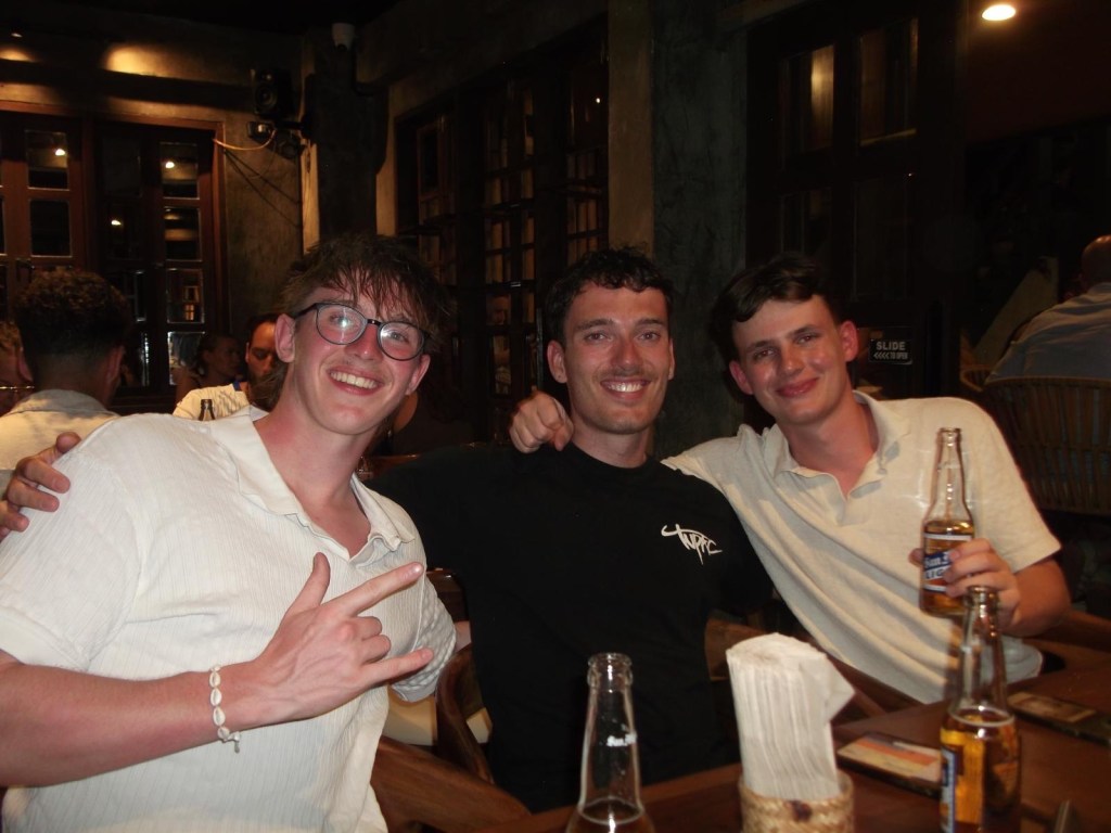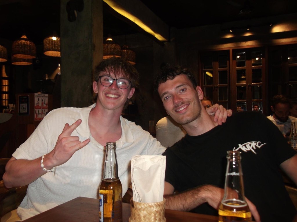 Als wäre das nicht schon schräg genug, schreibt der Hostelbesitzer noch Nachrichten an Leo, in denen er ihn als „Macho Boy“ bezeichnet und Herzchen-Emojis zufliegen lässt. Ich muss zugeben, es ist schon sehr witzig, auch wie unangenehm das Leo ist. Sowas ist einfach nur absurd. Eine gute Sache hat die Unterkunft aber, und das ist der Strandblick bzw. die Veranda.