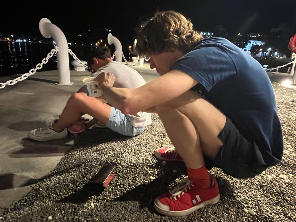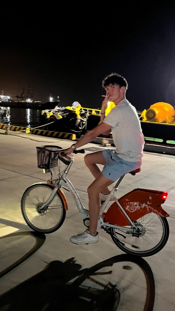 Am Pier bestreiten wir einen Verdauungsspaziergang, der verklebte Süßmäuler überdecken soll. Oskar scheint wirklich an einem Punkt angelangt, an dem der Appetit auf Süße Getränke und Speisen kurzzeitig aussetzt. Das crazy. Julius ist zu faul zum Laufen und schnappt sich ein E-Bike, nur um mit uns im Schritttempo mitzuhalten, dabei eine weitere Zigarette zu rauchen und ab und zu aufs Handy zu schauen. Ich hinterfrage das gar nicht offen, ein Foto und hochgezogene Augenbrauen dürften voll ausreichen. „Das ist der Vibe“, lacht Oskar sich tot.