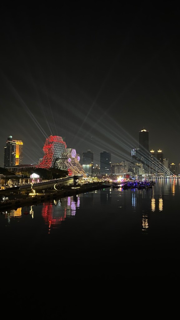Die Fährfahrt zurück bietet einmal mehr eine View auf Kaohsiung, aber bei Nacht. In der Ferne zieht eine Lichtershow Aufmerksamkeit, wahrscheinlich irgendwas mit dem chinesischen Neujahr. In der Hafenstraße vervollständigen wir meine Kaohsiung-Pier-Experience und besorgen anständiges shaved ice. Für Oskar bleibt nur der Tofupudding mit roten Bohnen, die ihm aber besser schmecken als mir. „Genau wie’s aussieht. Zuckriger Sirup und geschmackloser Bubble Tofu und stinknormale Bohnen.“ Trotz geringem Preis von unter drei Euro sind Julius und ich mit unserer Menge fast überfordert, taiwanesisches Essen eben. Wie gesagt, sobald man wieder in Deutschland ist, wird man vermutlich sowieso massiv sparen, da kann das Geld jetzt auch mal bedenkenlos ausgegeben werden.