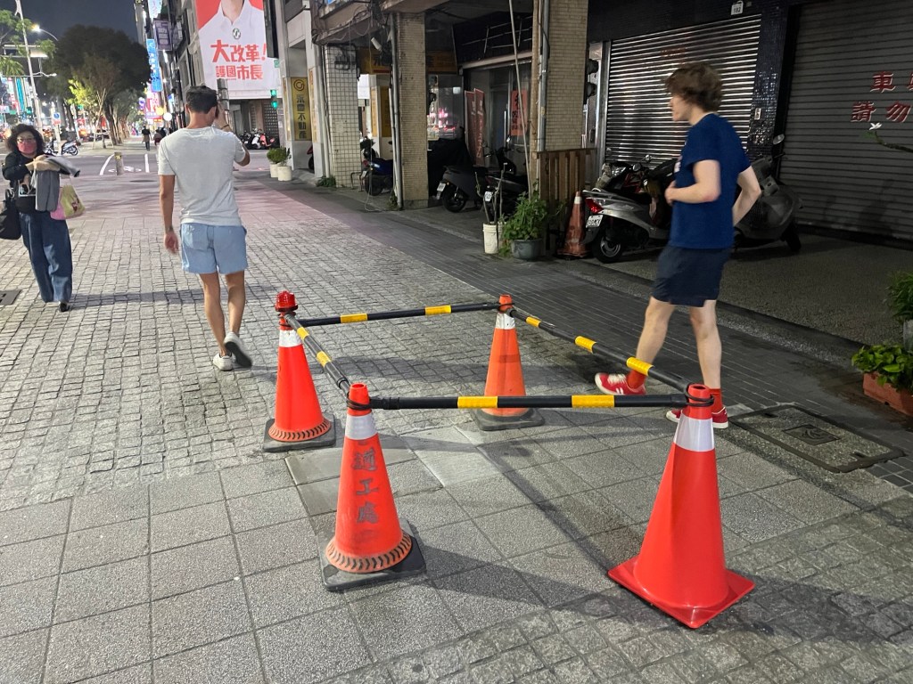 Die vielleicht zehnminütige Fahrt zum Hostel ist für mich mal wieder eine schöne Stadtfahrt, für Julius und Oskar aber eher ein gefährlicher Höllenritt. Letztendlich feiert Oskar sogar, was wir tun, aber ungewohnt ist es für die beiden definitiv, wie der Straßenverkehr im Meer aus Motorrädern funktioniert. Als alteingesessener Local bin ich natürlich nicht zimperlich, wenn ein paar Schlafmützen drei Sekunden brauchen, um nach Grün loszustarten, also überhole ich gerne. Beim anschließenden Zurückfallen muss man nur aufpassen, möglichst gerade zu bleiben, denn die Mopeds ziehen sowohl links als auch rechts gnadenlos vorbei. Den entsetzten Blicken meiner Mitfahrer begegne ich dann aber mit vorsichtigeren Manövern auf der rechten Seite, bleibe zumindest ein bisschen langsamer. Hauptsache, den beiden passiert nichts. „Und das hast du ein halbes Jahr ohne Helm gemacht?“, fragt Oskar und erzeugt sofort ein schlechtes Gewissen. „Ja“, muss ich kleinlaut zugeben, „aber auf der Fahrradtour hatte ich einen!“ In die Box an einer großen Kreuzung zu fahren, findet Oskar hingegen sterbenswitzig und stellt fest, dass inmitten der ganzen Motorräder wir drei die einzigen Fahrradfahrer sind. „Naja, bei dem Verkehr bleiben nicht so viele übrig“, ich zucke mit den Schultern. Auf jeden Fall ist es krass zu sehen, wie normal der taiwanesische Straßenverkehr für mich geworden ist und ich die omnipräsenten Motorräder überhaupt nicht infrage stelle, sondern sie vielmehr als selbstverständlich neben mir wahrnehme. Hinter dem Central Park kommt bald unsere Station, durch die Ampelphasen hält man eben gut mit den Mopeds mit.