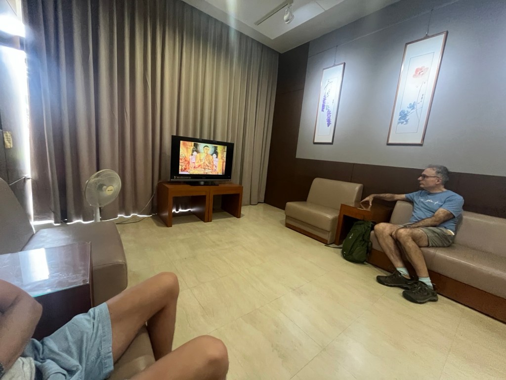 Die Zahnreliquie bekommen wir dann auch zu sehen, in einem eigenen, sehr eleganten Raum. Fotos sind streng verboten, außerdem muss man sich die Schuhe ausziehen. Der Raum mit der hohen Decke bei haltet schönste Einrichtungen, von holzgeschnitzten Wänden über steinerne Gemälde, edlem Holz überall und ganz vorne der bewachten Reliquie. Eine Bodhisattva oder Weiße Tara, eine weibliche Gottheit im tibetischen Buddhismus, liegt lächelnd auf einer Erhöhung, gemacht aus glänzendem weißen Stein. Hinter einer Glaswand am oberen Wandende liegt dann das Prunkstück, so klein, dass man es mit bloßem Auge kaum sehen kann, auch weil es von einer golden glänzenden Halterung umgeben ist. Wenn man es nicht besser wüsste, könnte man auch denken, dass Kronjuwelen oder andere Schmuckstücke ausgestellt werden. Auf dem Parkettboden gibt es kissenartige Sitze und eine mitarbeitende Schwester erzählt einem asiatischen Publikum auf Chinesisch die Geschichte des hiesigen Zahns (der übrigens schwarz kristallig und etwas vergammelt aussieht – kein Wunder nach all den Strapazen und all der Zeit). Die Wörter für Indien und Buddha greife ich bspw. auf, immerhin hat der Zahn Indien mehrfach durchquert. Interessant. Am Ausgang spricht uns eine Reisende an, die mit ihren fünf Sätzen Deutsch angeben will und sich freut, dass wir approven.