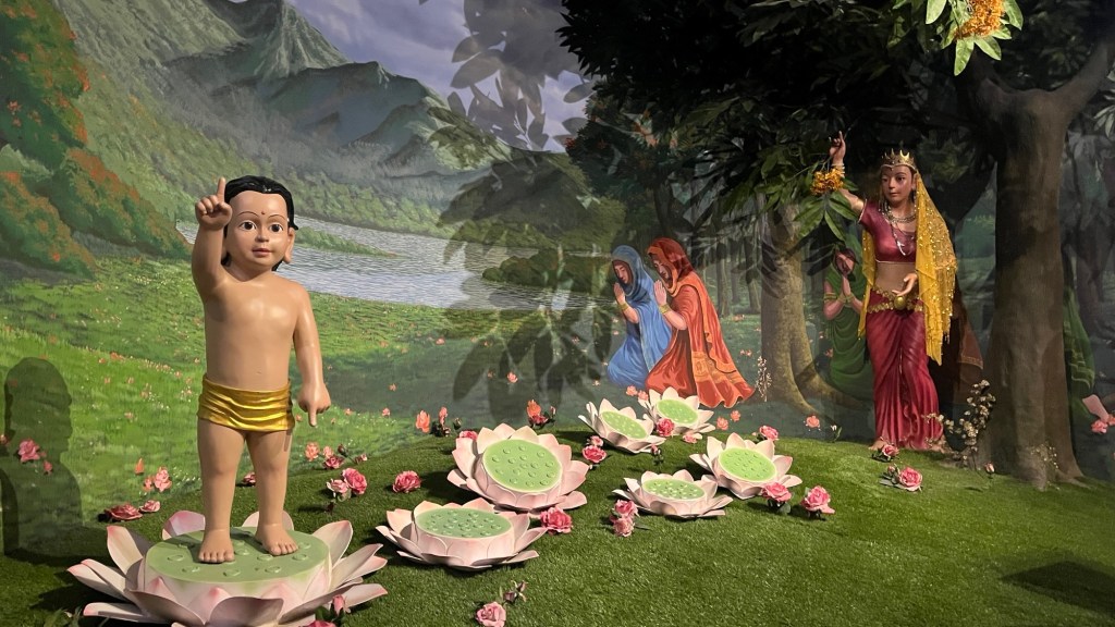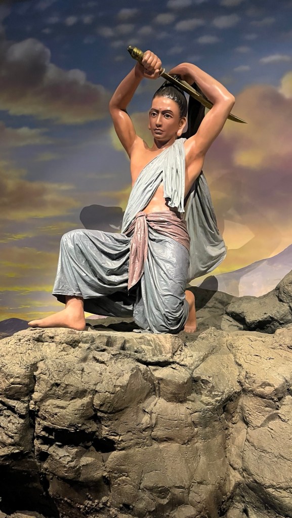 Ich erfahre, dass die Pagoden auf dem Gelände nicht dazu konstruiert wurden, sie über das erste Stockwerk hinaus zu besteigen, auch wenn der Zufall einige Treppenstufen hereingesetzt haben könnte. Es folgen weitere Museen, darunter Ausstellungen von Kunst, aber auch ein sehr interessanter Rundgang, der in acht Phasen das „Life of Buddha“ illustriert: „1. Birth“, „2. Early Life“, „3. Renunciation“, „4. Ascetic Practise“, „5. Defeat of Mara“, „6. Enlightment“, „7. Teaching the Dharma“, „8. Parinirvana“.