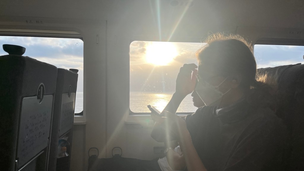 Gottlos früh, nämlich weit vor fünf Uhr, klingeln unsere Wecker. Gefühlt im Halbschlaf laufen wir zum Hauptbahnhof, meine letzten Momente in Kaohsiung. Die convenience stores dort haben noch geschlossen, mit leeren Mägen gehts um 5:34 Uhr dann los. Der Tze-Chiang-Express ist mindestens so angenehm wie der HSR, nur billiger und unüberfüllter, wobei das auch an der Uhrzeit liegen könnte. Die anderen schlafen, lesen oder hören Musik, Oskar und Papa bewundern die sich und eröffnende Natur der Ostküste. Ärgerlicherweise vergisst Oskar seine fette Essenstüte im Zug, die veganen Snacks für den Inselaufenthalt sind Geschichte.