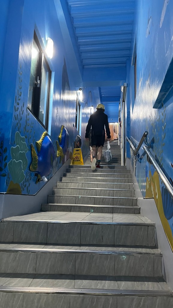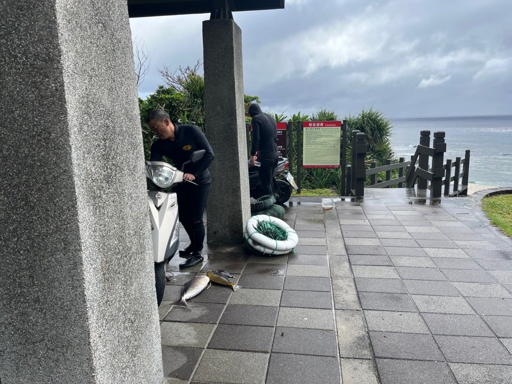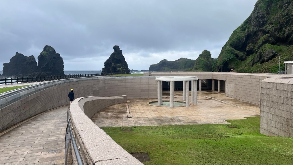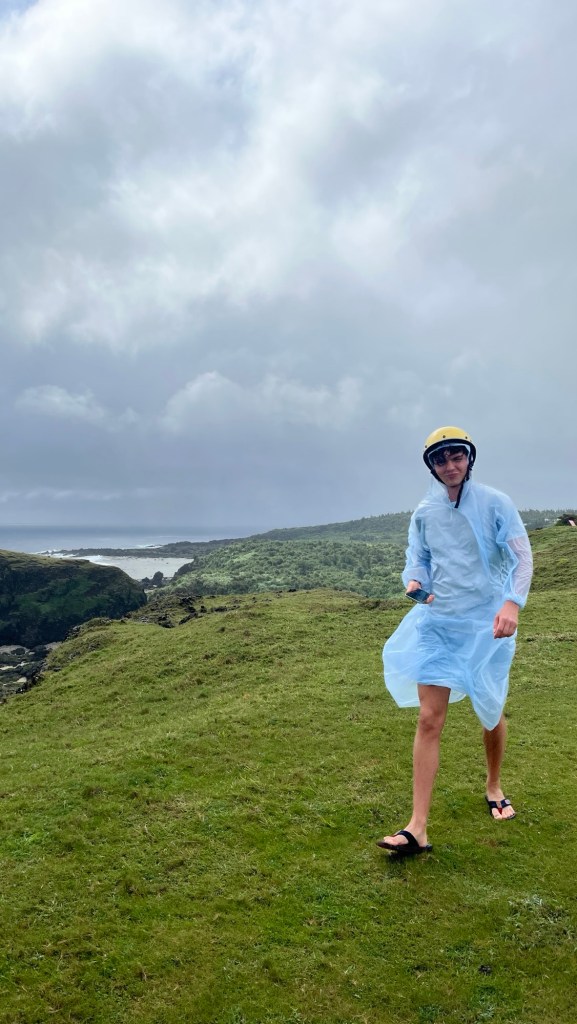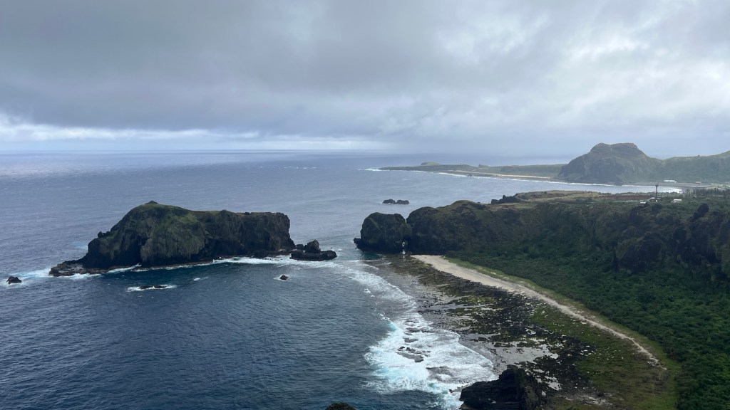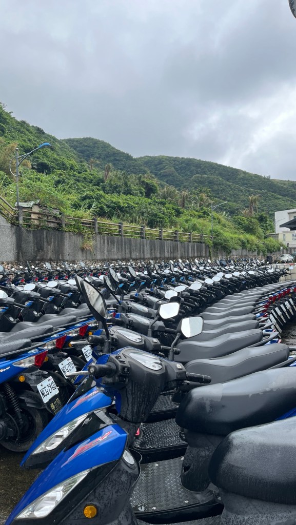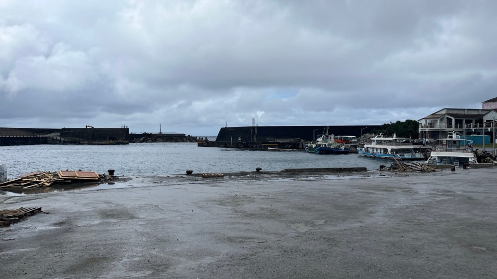 Die Unterkunft auf Lü Dao liegt zum Glück direkt am Hafen, und vielleicht ist es die Jahreszeit, aber von Touris fehlt quasi jede Spur. Das zeigt sich auch daran, dass uns keine aufdringlichen Motorradverkäufer begegnen, sehr entspannt. Der ganze Ort ist nämlich schon voll, da werden wir kaum etwas verpassen. Mit dem Rollerausleih warten wir noch etwas, gehen stattdessen zu Fuß in das Örtchen „Lü Dao Township“. Auf der ganzen Insel leben nur etwa 2.000 Menschen, wie Oskar per Wikipedia rausfindet. Das wenige, was er bisher sieht, vergleicht er immer wieder mit den Azoren, auf die er während seines Auslandssemesters in Lissabon geflogen ist. Locals auf solchen Inseln wüssten oft nur schlecht über die eigene Heimat Bescheid, hätten teilweise noch nie das Innere der Insel gesehen. Klingt komisch, aber auch irgendwo logisch, wenn man bedenkt, dass die Bewegmöglichkeiten in so einem Lebensmodell sowieso stark eingeschränkt sind und niemand mit dem Mindset leben kann, möglichst viel zu erkunden. Jedenfalls erkunden wir erstmal nur den ersten von zwei convenience stores auf der Insel, in denen man sich leider nicht setzen kann. Das Wetter schaut deprimierend aus: Wind ist noch okay, das ist hier normal, aber die Wolken und der starke Sprühregen betrüben mich doch sehr.