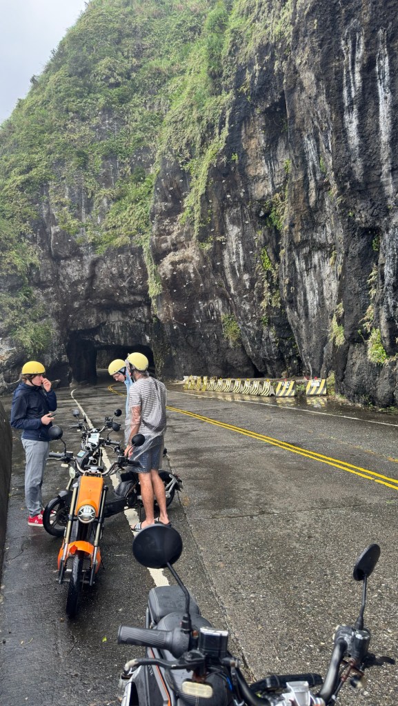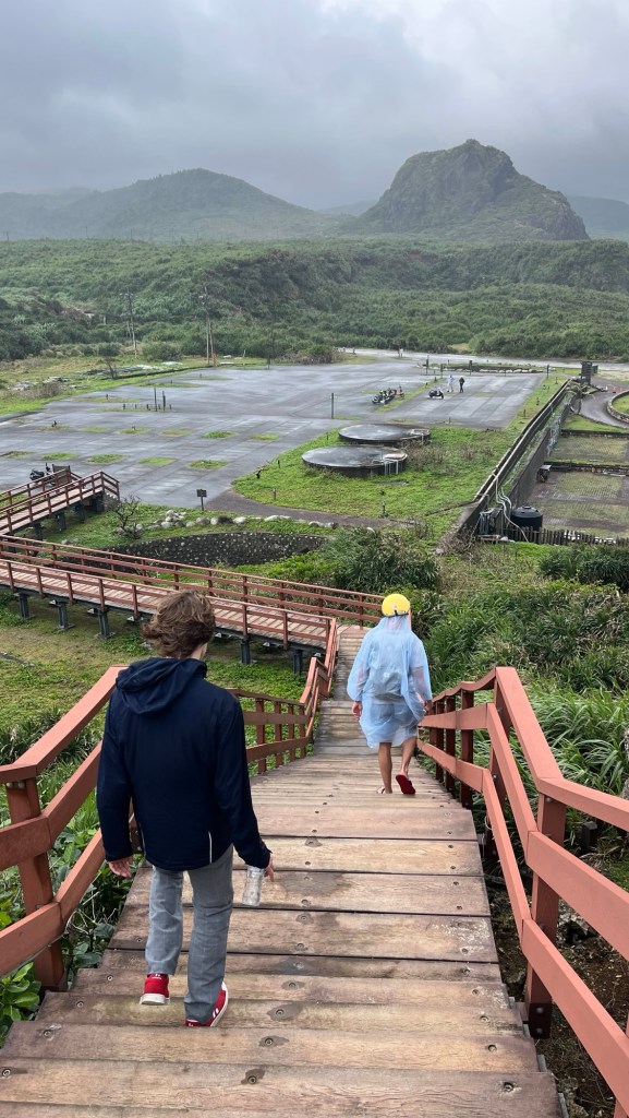Papa reicht es, aber wir anderen wollen die Leihzeit nutzen und ziehen weiter, auf zum „Green Island White Terror Memorial Park“ und der dahinterliegenden „Swallow Cave“. Das Memorial ist nicht ganz so interessant, aber Oskar will sich die Schilder durchlesen. Immerhin eine dunkle Kammer illustriert ganz gut, wie Häftlinge sich gefühlt haben müssen, mit nur einer kleinen Portion Tageslicht durch einen obiges Luftloch. Oskar und Julian lesen sich alle Schilder neben dem alten Gefängnis durch und finden so heraus, dass kleine Betonzellen dazu genutzt wurden, Häftlinge einzusperren, die durch verdächtige Bewegungen auffielen. In der Höhle wiederum wurden Theaterstücke aufgeführt, angesichts der Umstände vermutlich mehr Qual als Spaß. Mit und ohne Regen ist es hier rutschig, schnell wieder zurück. Schön, dass ich mich gar nicht mehr gezwungen fühle, Fotos zu machen, schließlich kenne ich den Ort ja schon. So kann ich die Natur noch mehr genießen als sonst.