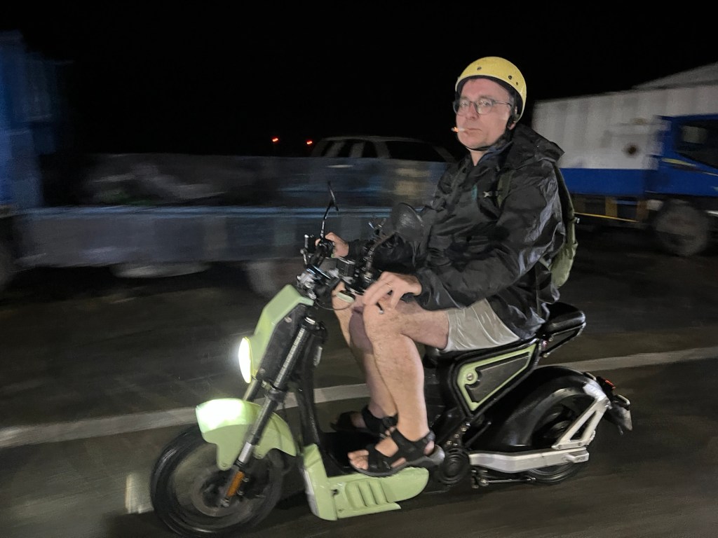 Wir bangen um unsere Anzeigen, schaffen die Runde aber ohne Liegenbleiben. Beim Batteriewechsel muss ich meinem Ärger Luft machen, natürlich höflich und freundlich, wie Oskar mich dazu anhält. Nur gebe ich im Gegensatz zu früheren Malen nicht schnell klein bei, als der Typ meint, ich rede etwas herbei, das es nicht gebe. Eine detaillierte Beschreibung meines Novemberrollers („It was around 60-70, the one now is so slow“) hilft seinen grauen Zellen auf die Sprünge, jetzt weiß er, wovon ich spreche. „They are sold out“ kaufe ich ihm noch als Tippfehler ab, aber bei „They are all broken“ hört‘s auf. Wir sind offensichtlich die einzigen, die hier irgendetwas ausleihen, nie im Leben sind alle E-Roller ohne Geschwindigkeitslocker kaputt. Ich lasse nicht locker und handle immerhin einen Discount von 100$TD pro Roller aus (500$TD / 13,55€ insgesamt). Immerhin zahlen wir das selbe für eine viel schlechtere Leistung. Der Typ kann vielleicht nichts dafür, aber über eine schlechte Bewertung denke ich nochmal nach. „Der verhandelnde Boss“, wertschätzt Oskar meinen Einsatz. Den Deal empfinde ich immer noch als schlecht, aber der wahre Skill dahinter ist ja, solche Dinge ansprechen zu können, mein früheres Ich hätte sich das niemals getraut. Sowieso bin ich in der Gruppe derjenige, der die Dinge mit den Locals regelt, obwohl meine Chinesischkenntnisse dabei überhaupt nicht zum Einsatz kommen. Ich freue mich aber sehr über das Vertrauen, die Rolle gefällt mir.