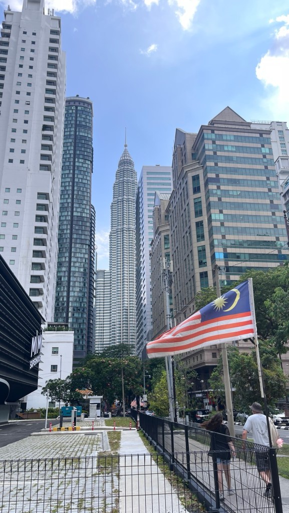 Nachdem ich zuletzt meist stark in die Planungen involviert war, dreht sich ab jetzt das Blatt. Papa hat Liebe und Mühe in die Urlaubsplanungen gesteckt, für heute ist erstmal die Erkundung Kuala Lumpurs vorgesehen. Davor frühstücken wir in der M-Etage unseres Hotels, in der sich ausschließlich Ausländer, allen voran Deutsche tummeln. Baked beans, Waffeln mit Honig, Toast, Müsli, sogar Käse, nichts deutet auf Malaysia hin. Es ist aber allemal besser als meine Mahlzeiten in den Philippinen oder Taiwan, auch wenn Papa das Essen als „etwas pappig“ bezeichnet und den Kaffee nicht mag.