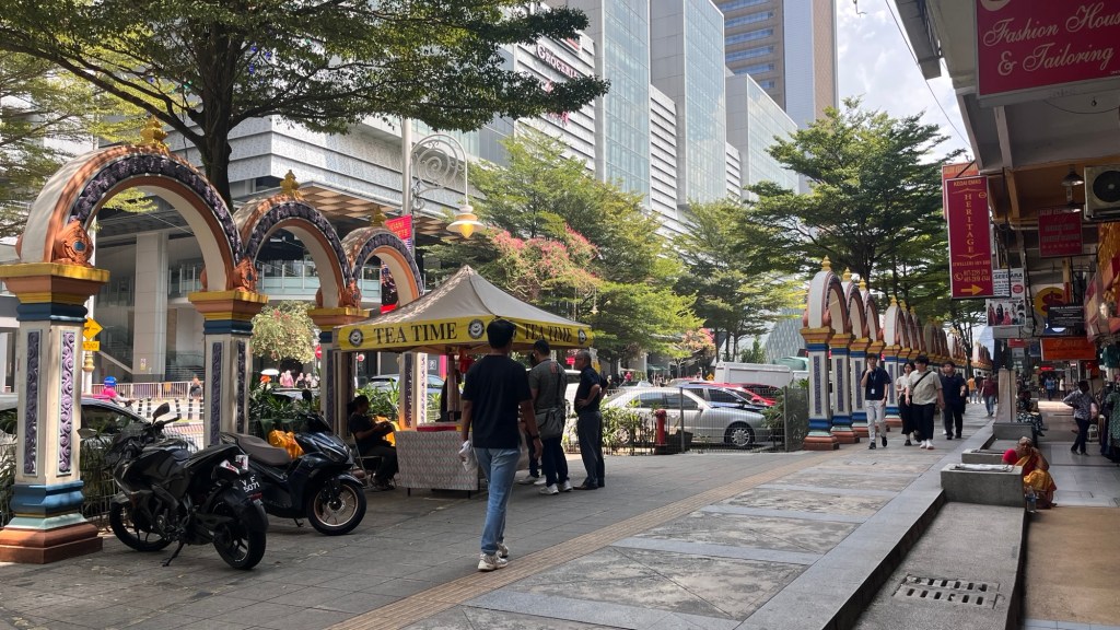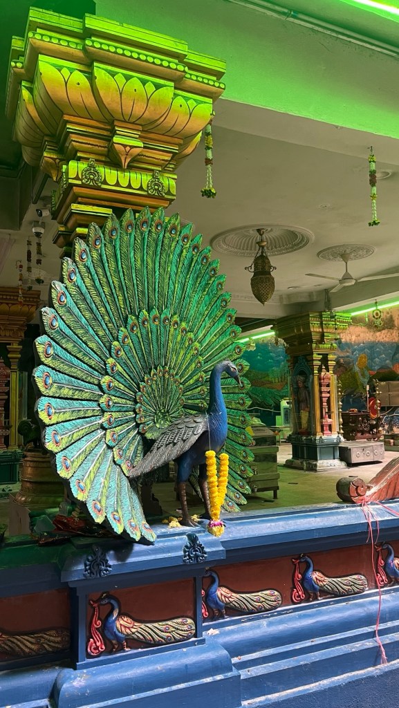 Als Nächstes nehmen wir die gefüllte, autonom fahrende Metro nach „Little India“, wie ein Stadtteil mit hohem Anteil indischstammiger Bevölkerung heißt. Dass der ethnische Anteil der Chinesen in Kuala Lumpur bei über der Hälfte liegt (der malaysische nur bei einem Drittel), bekommt man hier überhaupt nicht mit. Es sind viele europäische Touristen unterwegs, kleine bemalte Torbögen grenzen den Kiezbeginn eindeutig ab. Frauen mit Schleiern sitzen auf Bordsteinen, verkaufen Tee in kleinen Pappbechern und reden mit dem so bekannten Akzent. Trotz kultureller Prägung sieht man hier einen wilden Mix aus Gotteshäusern: buddhistische und hinduistische Tempel, Moscheen, katholische und protestantische Kirchen, nur Synagogen entdecke ich keine. Julian verkippt seinen Tee, aber so sauber ist das Straßenbild jetzt auch wieder nicht, dass das jemanden kümmern würde. Ich warte noch auf die ersten Kakerlaken.