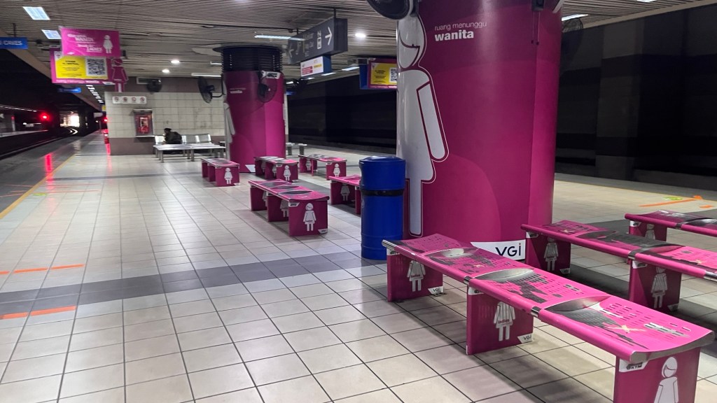 Wir folgen indischen Locals über die Einbahnstraßen, zu unabschätzbar ist der Verkehr. An einer Stelle dreht sich Linksverkehr sogar in Rechtsverkehr um, da scheint jemand das bessere System erkannt zu haben. Da alle Metrolinien getrennt voneinander geplant und gebaut wurden, gibt es für jede Linie einen eigenen Eingang, was zu Übersichtlichkeitsproblemen führt, gerade wenn an einer Station mal vier oder fünf Linien halten. Unsere nächste Bahn verlangt keinen scanbaren Chip, sondern einen QR-Code, damit funktioniert es aber. Eine Sonderlinie fährt zu den „Batu Caves“ im Norden der zerstückelten Stadt. Richtiges System hinter dem Stadtplan kann ich auch auf Maps nicht erkennen, alles scheint chaotisch gewachsen. Immerhin hat sich die Bevölkerung hier in den letzten 70 Jahren verdreißigfacht. Ziemlich fatal, wenn man bedenkt, dass sich solch weitläufige Infrastruktur kaum noch beseitigen lässt, sobald sie einmal flächendeckend gebaut wurde. Und dabei gibt es noch viel schlimmere Beispiele, in Kuala Lumpur kommt man ja noch gut voran, sobald man sich daran gewöhnt hat. Fortschrittlich fühlt sich aber an, dass es in den Metros Abteile gibt, die ausschließlich Frauen vorbehalten sind. Ganze Bahnsteigabschnitte sind dafür vorgesehen, offensichtlich markiert. Auf den zweiten Blick drängen sich aber andere Gedanken auf: Ist es vielleicht auch religiös bedingt, oder gibt es etwa guten Grund zu der Maßnahme? Von Indien hört man ja immer wieder entsprechende Geschichten, bei Malaysia habe ich keine Ahnung.