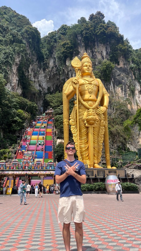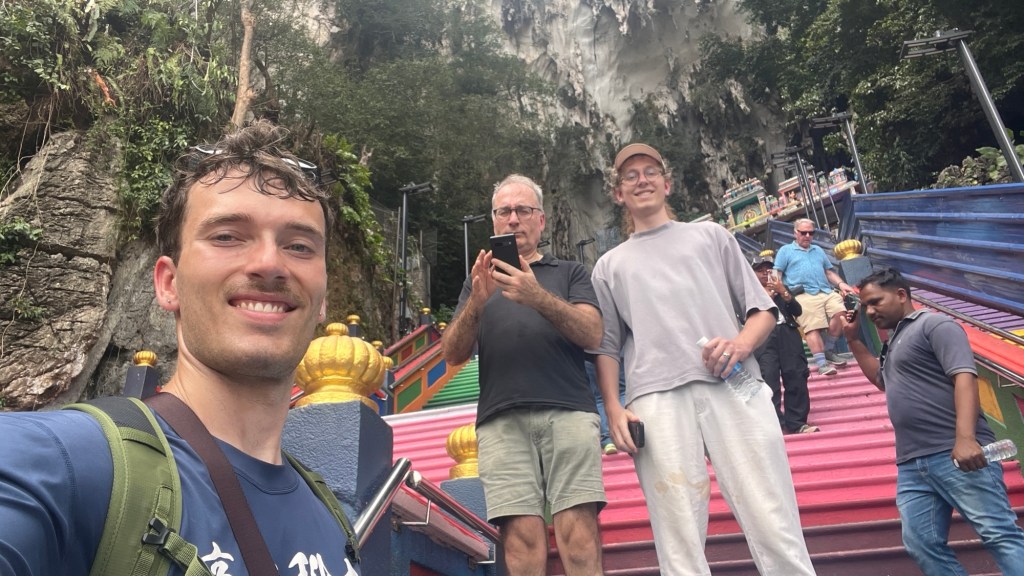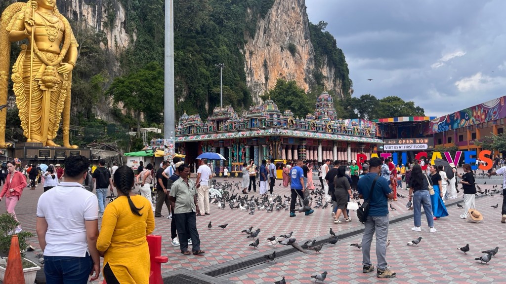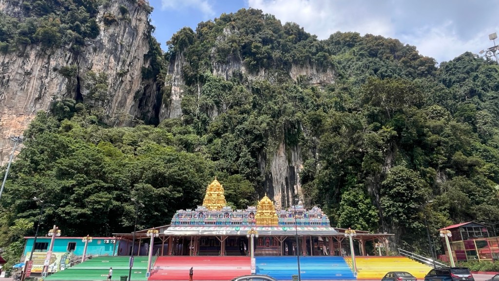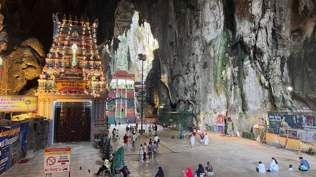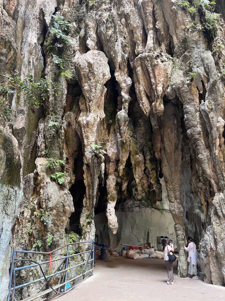 Der Zug ist nicht besonders voll und braucht ein Weilchen. Während der Fahrt verfolge ich weiterhin die Iran-News, die gleichzeitig absurd, aber auch unglaublich faszinierend sind. Gut, dass es an der Endstation Ablenkung gibt. Das Gelände ist recht groß, vor den aufragenden Felswänden befinden sich aufgeheizte Parkplätze und Touristenmassen. Eine Französin hilft mir, Toiletten zu finden, für die man einen Ringgit (0,22€) zahlt.