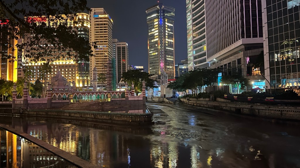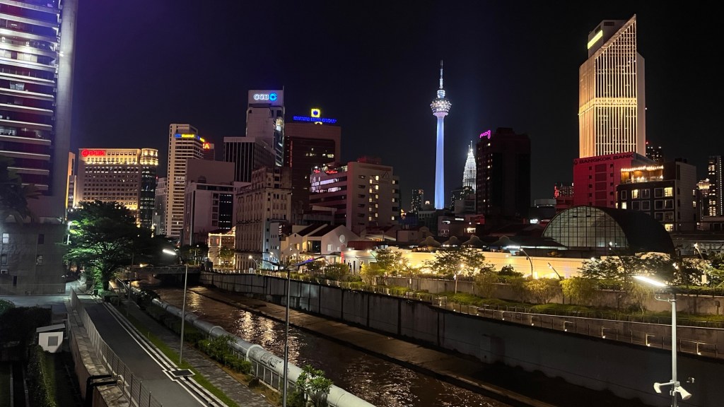Danach findet sich sogar noch eine Cocktailbar, nicht selbstverständlich in einem muslimischen Land, erst recht nicht während Ramadan. Allerdings kosten die Drinks etwa dreimal so viel wie das Abendbrot, kein Wunder. Nur eine chinesische Gruppe sitzt in der Nähe, sonst ist es leer. Trotz nächtlichem Fastenbrechen schließen die Geschäfte dann, und bleibt noch ein Verdauungsspaziergang, auf dem wir versuchen, in der Architekturtrümmerlandschaft der Stadt einen Blick auf die „Petronas Towers“ zu bekommen.