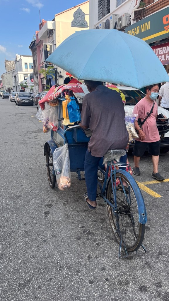 In Richtung Innenstadt lockert sich alles wieder auf, dicht an dicht feiern Inder und Chinesen ihren Nachmittagsalltag. Es ist wirklich besonders, wie dicht an dicht die Kulturen hier doch leben. Papa fällt auf, dass man gemeinhin mehr indisches Essen serviert bekommt, die Architektur auf voll aufseiten der Chinesen dominiert, von den britischen Kolonialbauten abgesehen. Papa bestaunt die gestern gelernten Giebelformen, auch Julian fotografiert hier und da. In der ‚kühlen‘ Nachmittagssonne (es sind nur zwei Grad weniger, fühlt sich aber nach bestimmt fünf an) macht das alles gleich viel mehr Spaß, man stirbt nicht sofort einen Hitzetod. So besorgen wir uns neue Süßigkeiten, farbenfrohe Kreationen aus Milch, Fett und Zucker. Ich persönlich mag die indische Nachtisch-Küche trotzdem mehr als bspw. die Baklava-Tradition.
