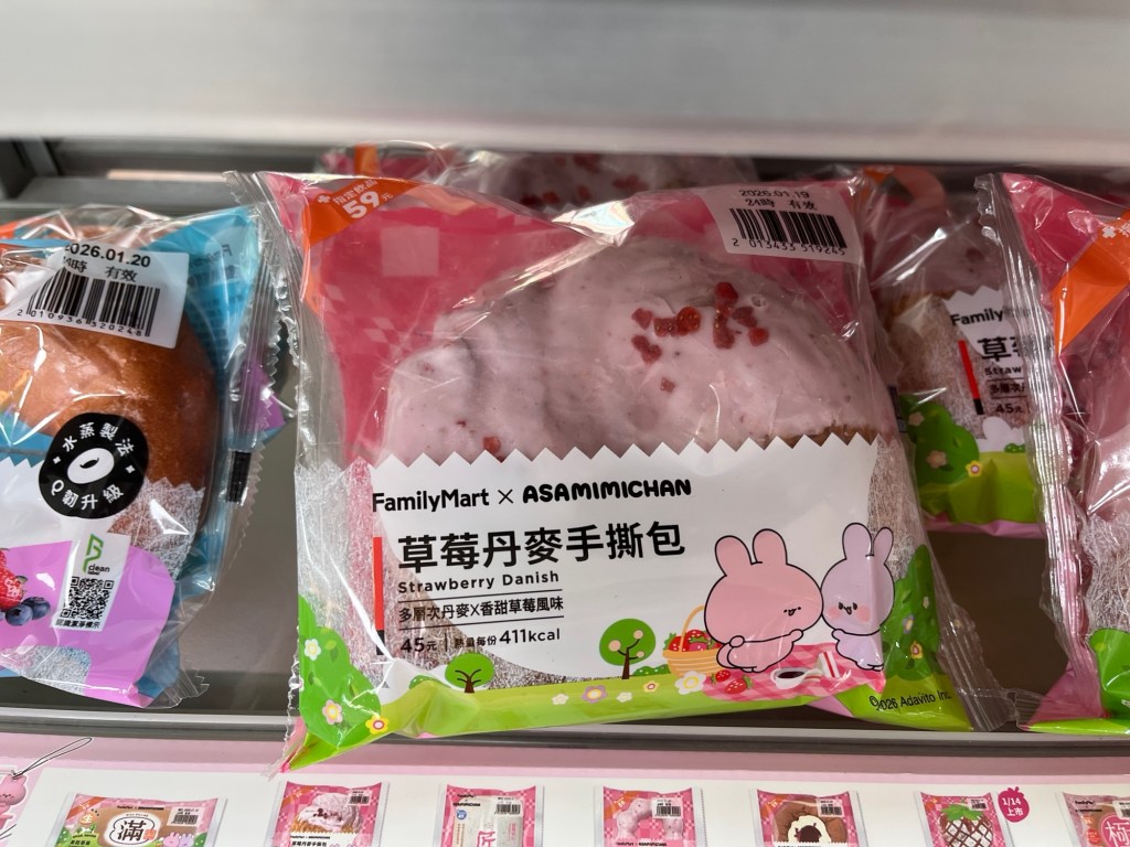 Etwas anders als die bereits erwähnten Brötchen sind andere Blätterteigwaren, die auch süß sind, den Zucker aber hauptsächlich auf sich tragen. Diesen Platz vergebe ich deutlich spezifischer, denn genau genommen kenne ich hierzu nur ein Produkt: „Strawberry Danish“. Erst sehr spät und auch nur im FamilyMart aufgetaucht, befürchte ich, dass es sich um eine limitierte Auflage (oder Aufbackware?) handelt. Es hat mich leichter in die Abhängigkeit geführt als die oben genannten Brötchen mit Füllung, und das will was heißen.