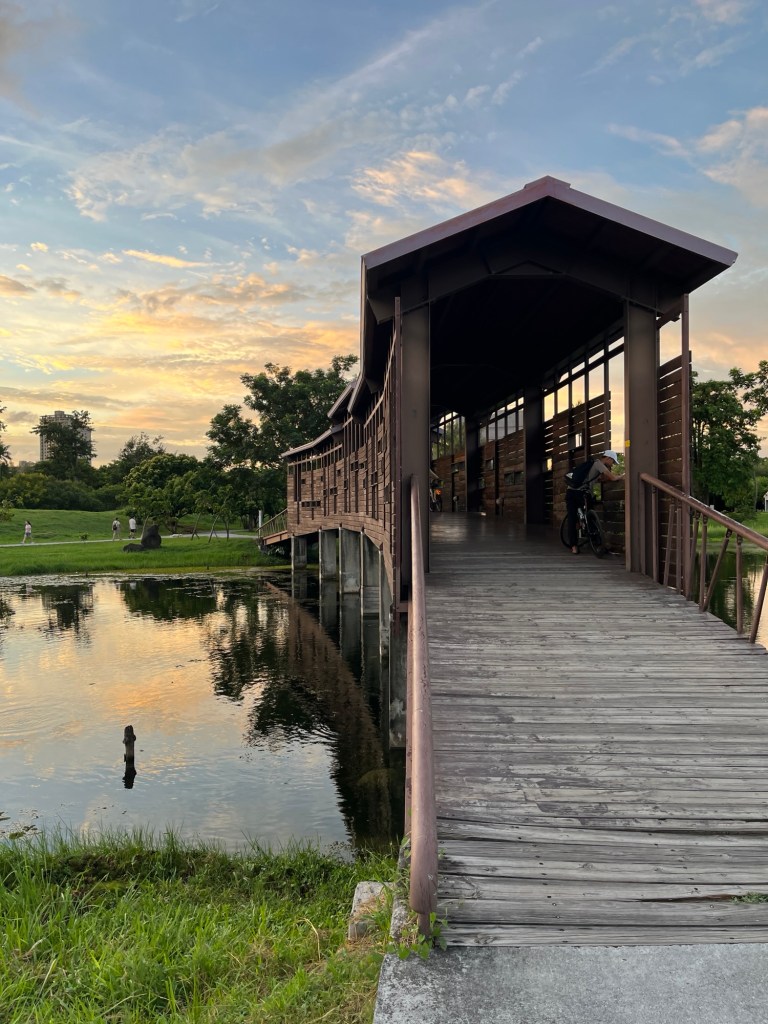 Der Love River schlängelt sich durch Kaohsiung, bevor er nahe des Music Center in den Hafen fließt. Fast durchweg begleitet ihn dabei ein gut befahrbarer Fahrradweg, und wenn man ihn bspw. nachmittags auf einem YouBike in Richtung Hafen abfährt, erlebt man eine tolle Kulisse aus bergigem Nationalpark und tiefstehender Sonne, kommt nebenbei an vielen wichtigen Orten der Stadt vorbei. Zwischendurch kann man sich auf Bänke setzen, die meist von Grünzeug umgeben sind.