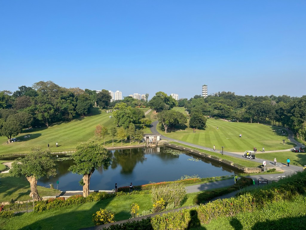 Der Central Park wird seinem Namen gerecht und liegt unweit der Kreuzung beider Metro-Linien. Er hat eine konische Grundform und wird von mehreren großen Straßen umrandet, ist angesichts dessen aber erstaunlich ruhig. Die Art, wie die fern aufragenden Wolkenkratzer über den Bäumen herausgucken, hat etwas von New York, wenn auch in klein. Von einem Balkon im 28. Stock bestätigt sich dieser Eindruck. In der Mitte befindet sich eine Metrostation und große Flächen für Events wie Weihnachtsmärkte oder sogar kleine Konzerte. Am nördlichen Rand kann man Tennis oder Pickleball spielen, außerdem steht hier eine öffentliche Bibliothek. Wenn man in der Nähe wohnt, kann man ohne Probleme täglich eine entspannte Runde drehen.