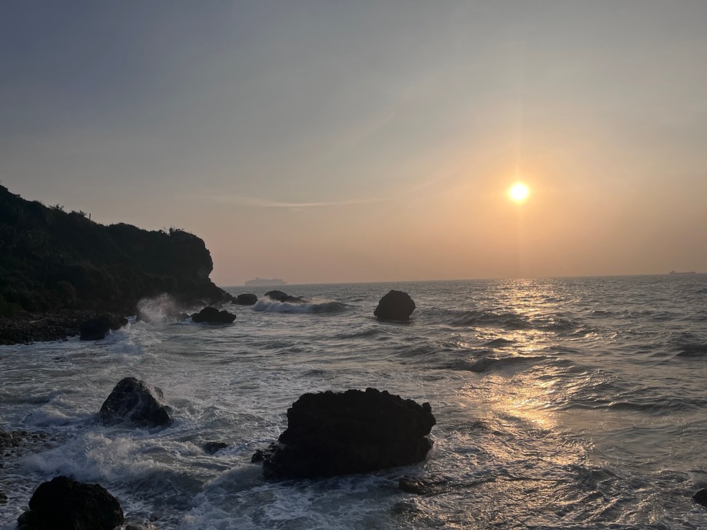 Die Sea Caves sind in Wahrheit zwar keine, aber ihr Maps-Eintrag verleiht ihnen den Namen. Nicht besonders gut zu erreichen auf der Westseite des Shoushan-Parks (praktisch nur mit dem Bus, der frühe letzte Fahrten hat), lohnt es sich trotzdem! Für den Sonnenuntergang reicht es quasi immer, und danach gibt es sowieso nicht mehr zu sehen. Dort, wo die angeblichen Höhlen sind, kann man auf Felsen weit oberhalb der Brandung klettern und in Ruhe der Sonne beim Untergehen zusehen. Ab und zu sind Affen in der Nähe, sowie instageile Pärchen, die sich alle auf denselben Stein stellen. Der wahre Schatz liegt versteckt im Rande: Geht man die Buschwege nach Norden, führt irgendwann ein Seil den Hang hinunter. Am felsigen Strand kann man sich mithilfe der Palmen von Fels zu Fels hangeln, stößt dabei auf ein verlassenes Hüttchen und hat i.d.R. den gesamten Abschnitt für sich alleine. Große Felsbrocken, auf die man sich nachdenklich setzen kann, inklusive.